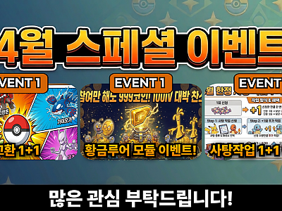 4월 사탕작업 1+1 이벤트!4월 한달동안 모든포켓몬 사탕작업 진행시 1회 추가로 진행하는이벤트를 진행합니다!자세한 내용은 아래 이벤트내용을 확인해주세요!{광고159}포고지지 - 사탕작업 1+1 이벤트!사탕 1+1 …