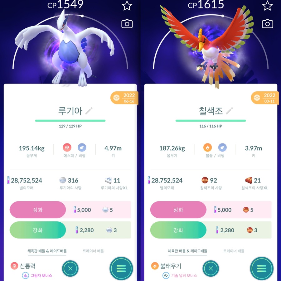 LA로케이션 이로치 망나뇽은 루기아, 칠색조 중 1개와 교환,