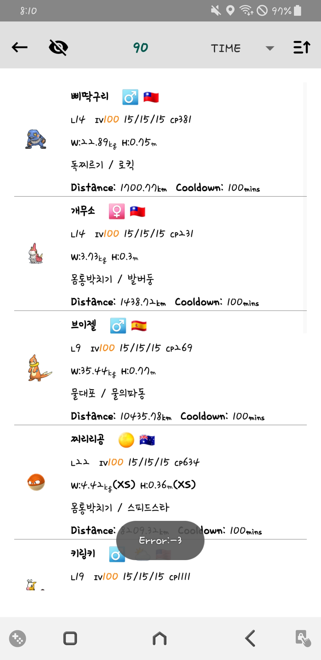 feeds를 하면 원하는 범위의 포켓몬이 안뜨고 error라고 뜨는데 어떻게 해야할까요