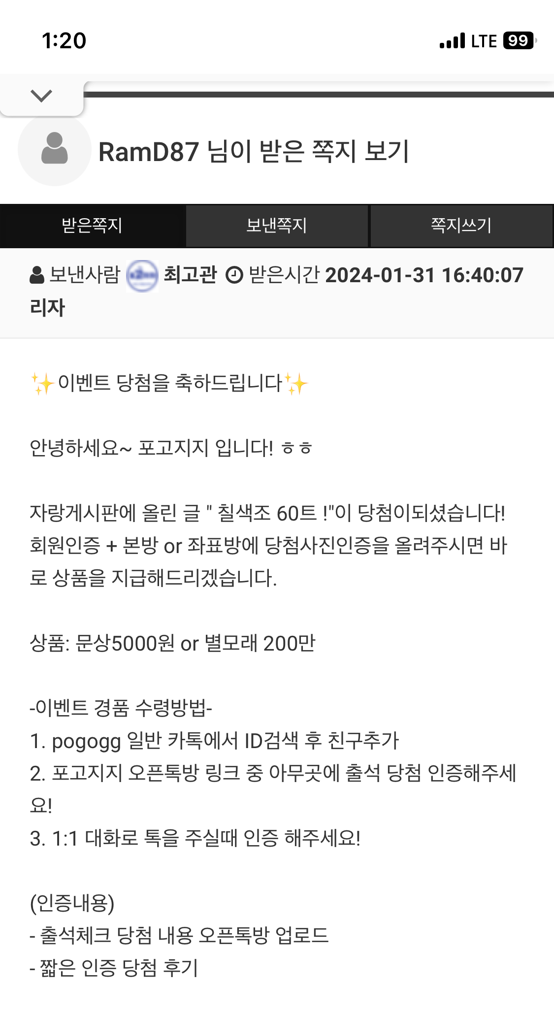 이벤트 당첨 됬습니다~~!