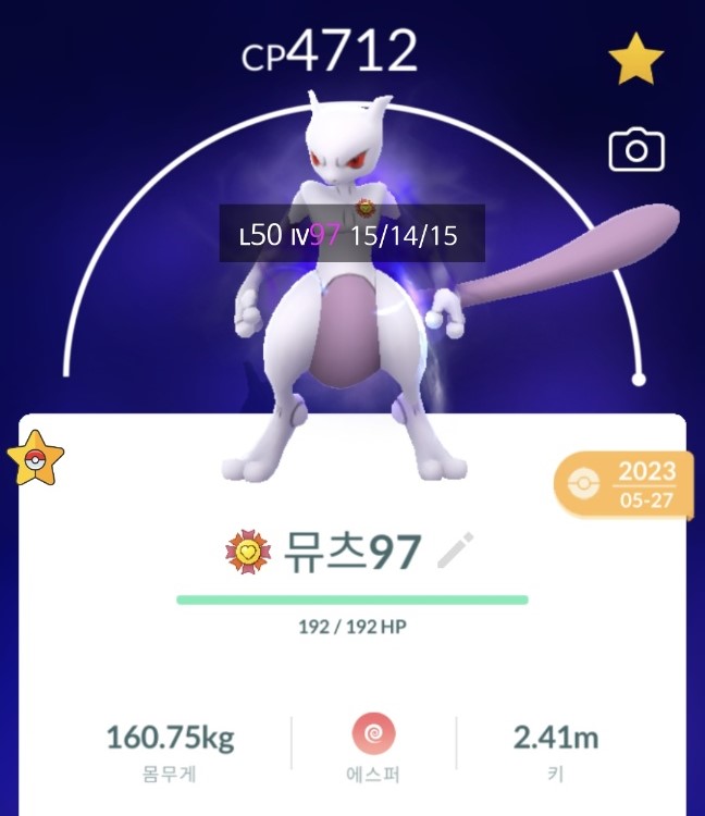 작년5월에 그림자뮤츠 레이드할때 200마리 정도 잡아서 그나마 가장 좋은게 이거네요...