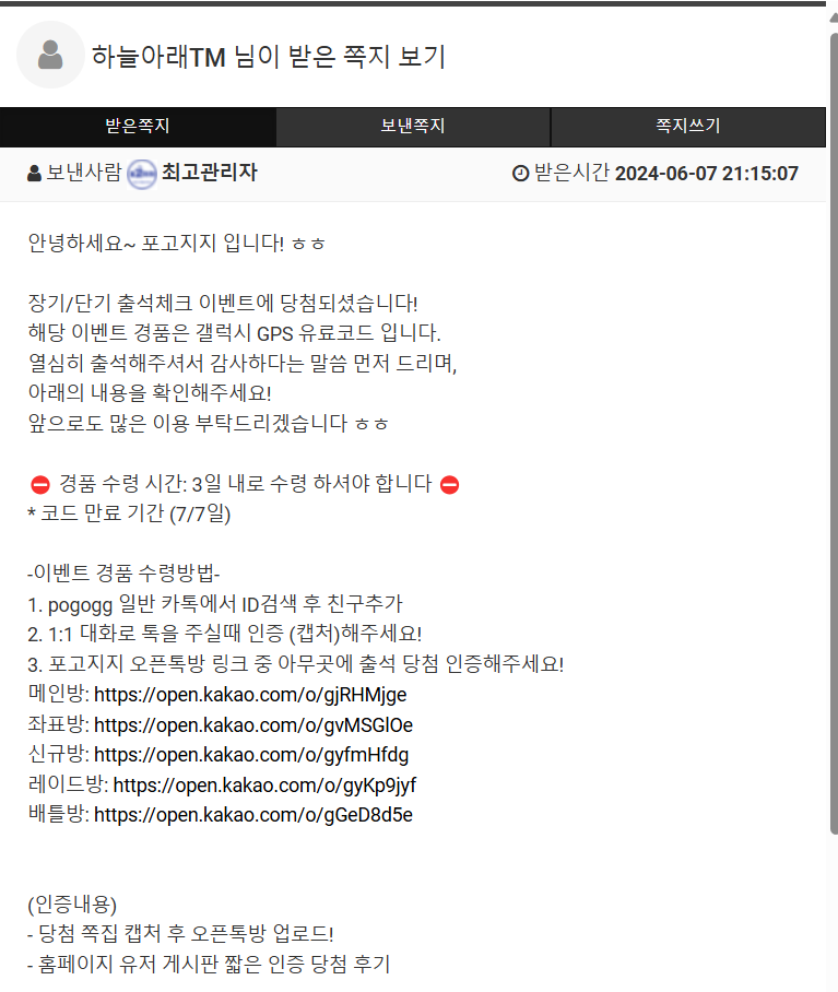 출석 이벤트 당첨