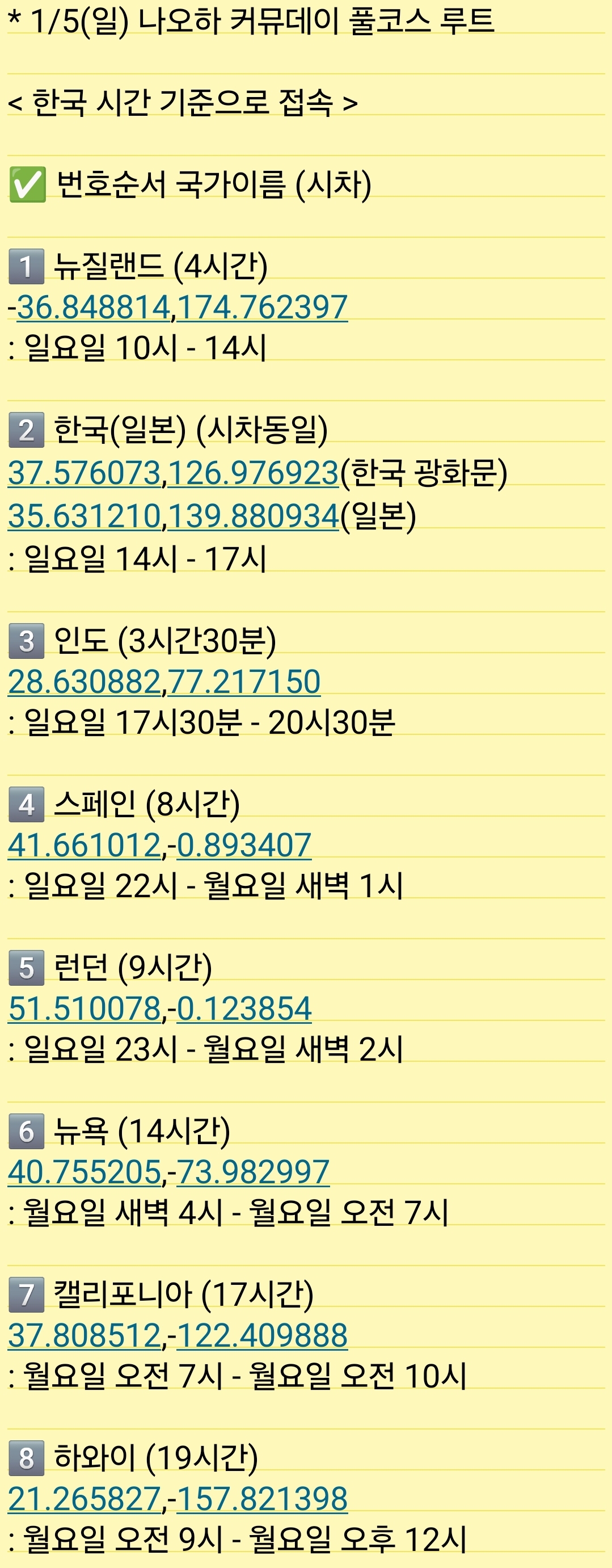 * 1/5(일) 나오하 커뮤데이 풀코스 루트 <한국 시간 기준>
