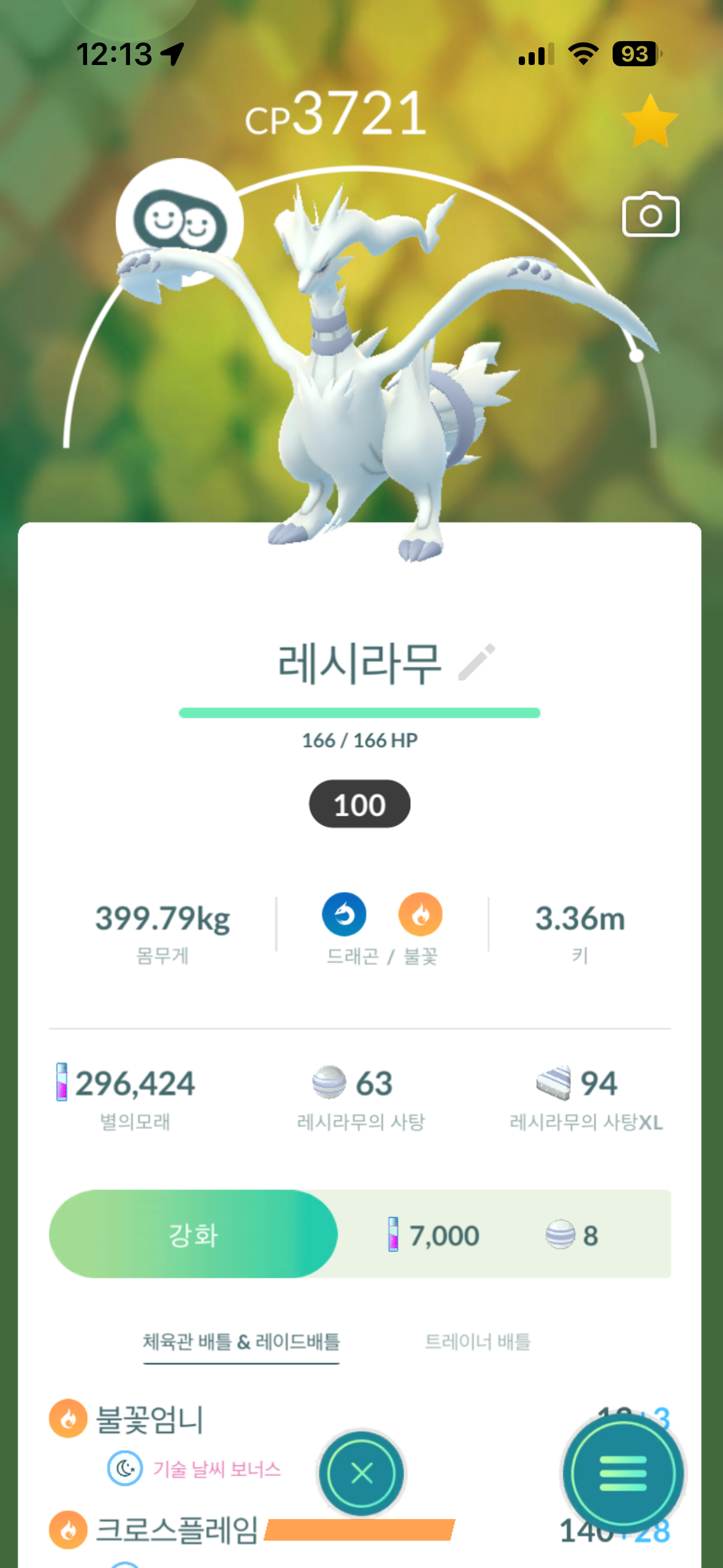 포고지지님이 전설 사탕작 해주셨는데 대략 하루정도 시간이 걸린 것 같고요 레시라무 사탕작을 해주셨는데 사탕을 모으기 너무 힘들어서 이상한 사탕 써야하나 고민을 했지만 포고지지님 덕분에 레시라무 레벨업을 많이 할 수 있을 것 같습니다 포고지지님 정말 감사합니다!!