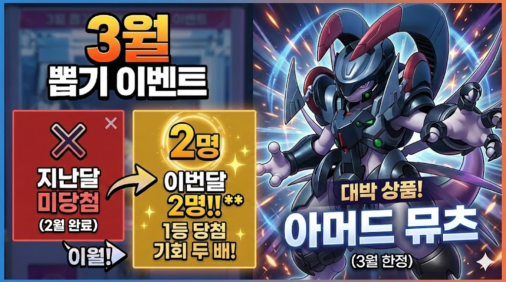대박이벤트 : 참여할수록 당첨확률이 UP : 1등 (아머드뮤츠) 2명까지!포고지지 3월 - 랜덤 뽑기 이벤트 !!