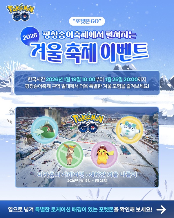 평창송어축제에서 특별한 포켓몬GO 2026 겨울 축제 이벤트가 진행됩니다!